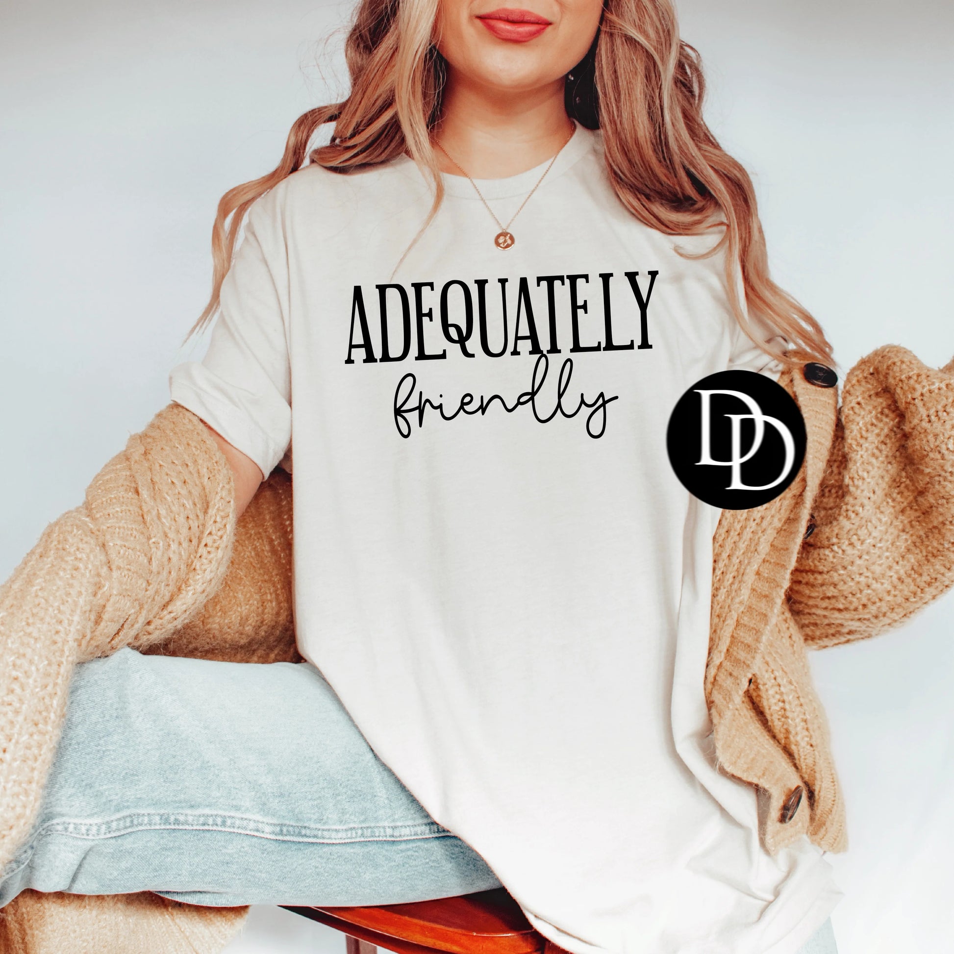Introducing Adequately Friendly, the shirt that easily makes friends - and enemies! With friendly vibes on full display, this shirt is a surefire way to get noticed and make people smile. Show your personality with Adequately Friendly – wear it well!
