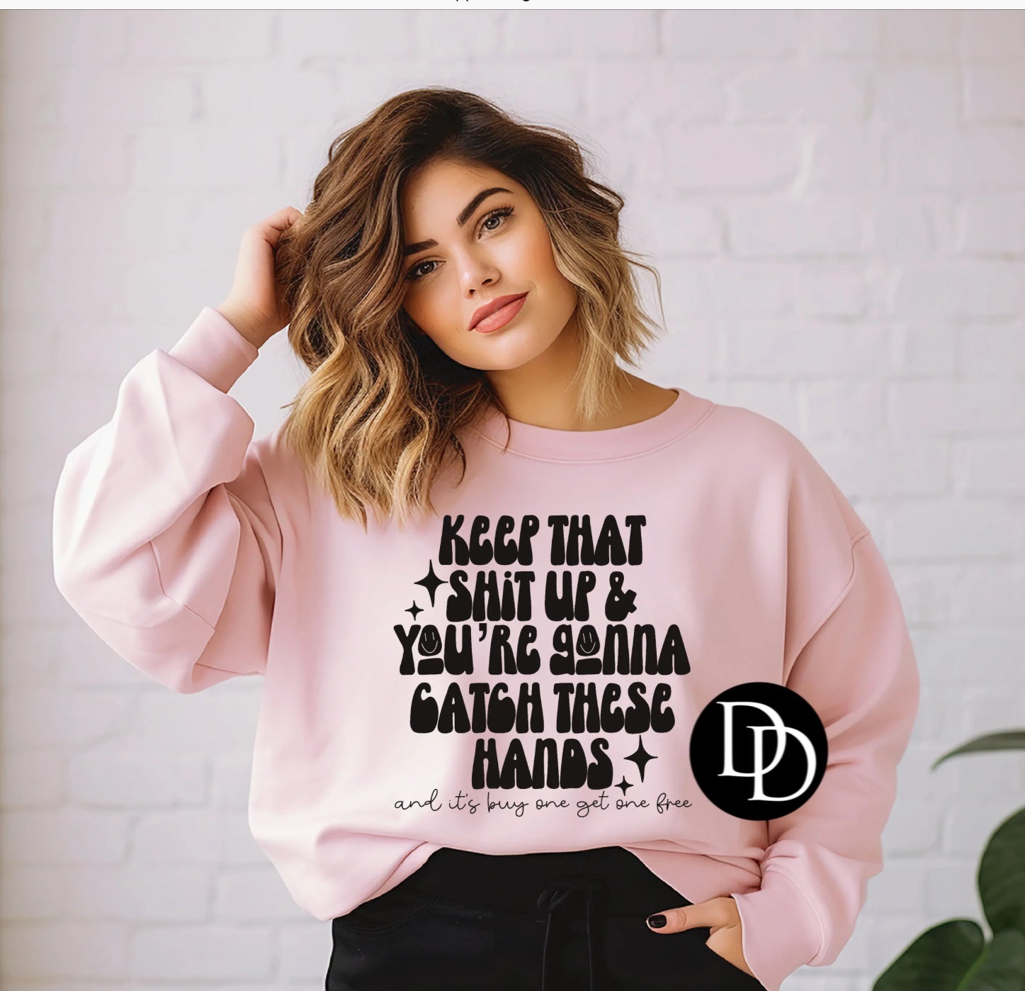 Show off with style! Make a bold statement with this Catch These Hands T-shirt, designed to make a statement and keep you looking fly. Let your hands do the talking!