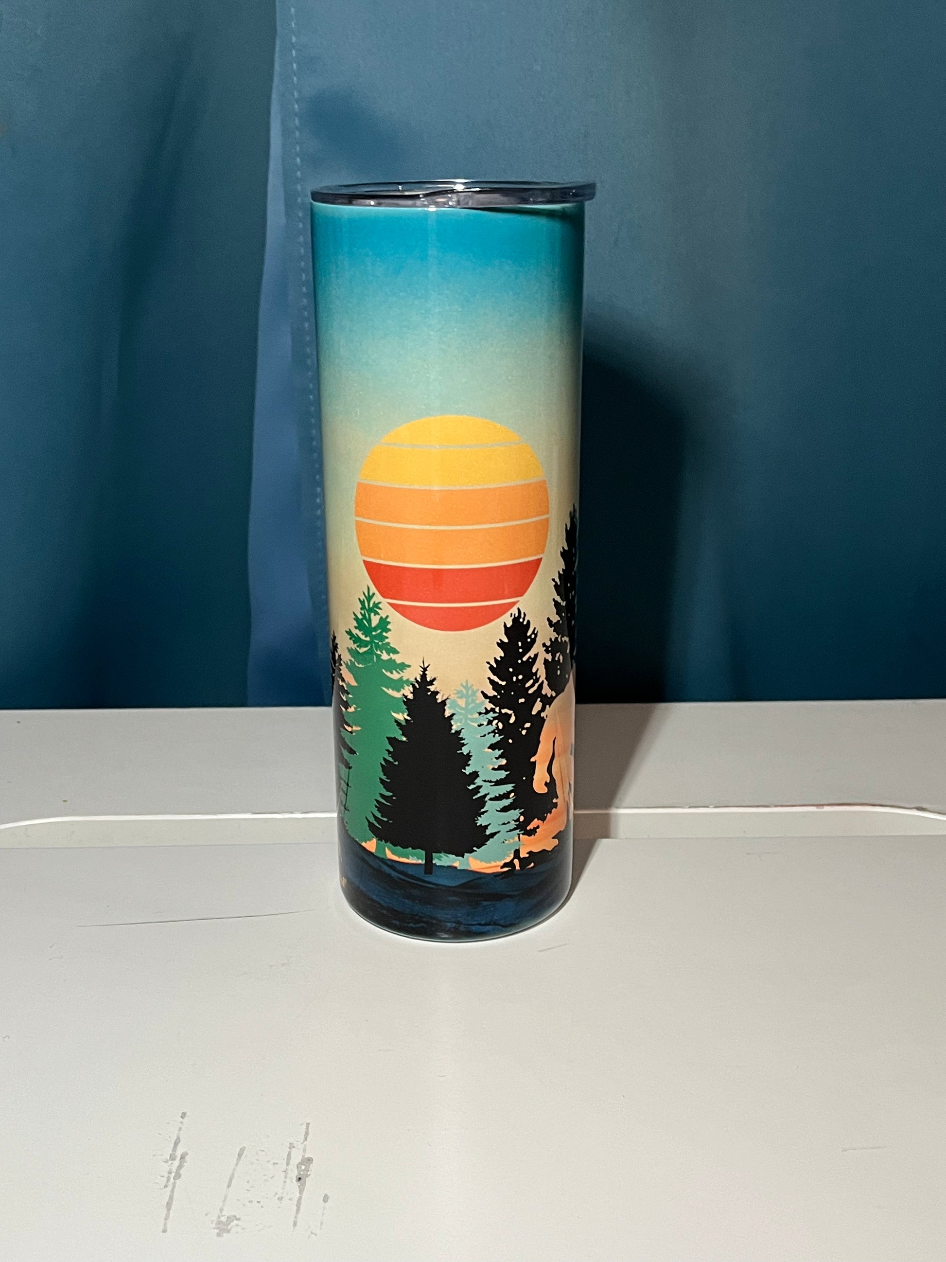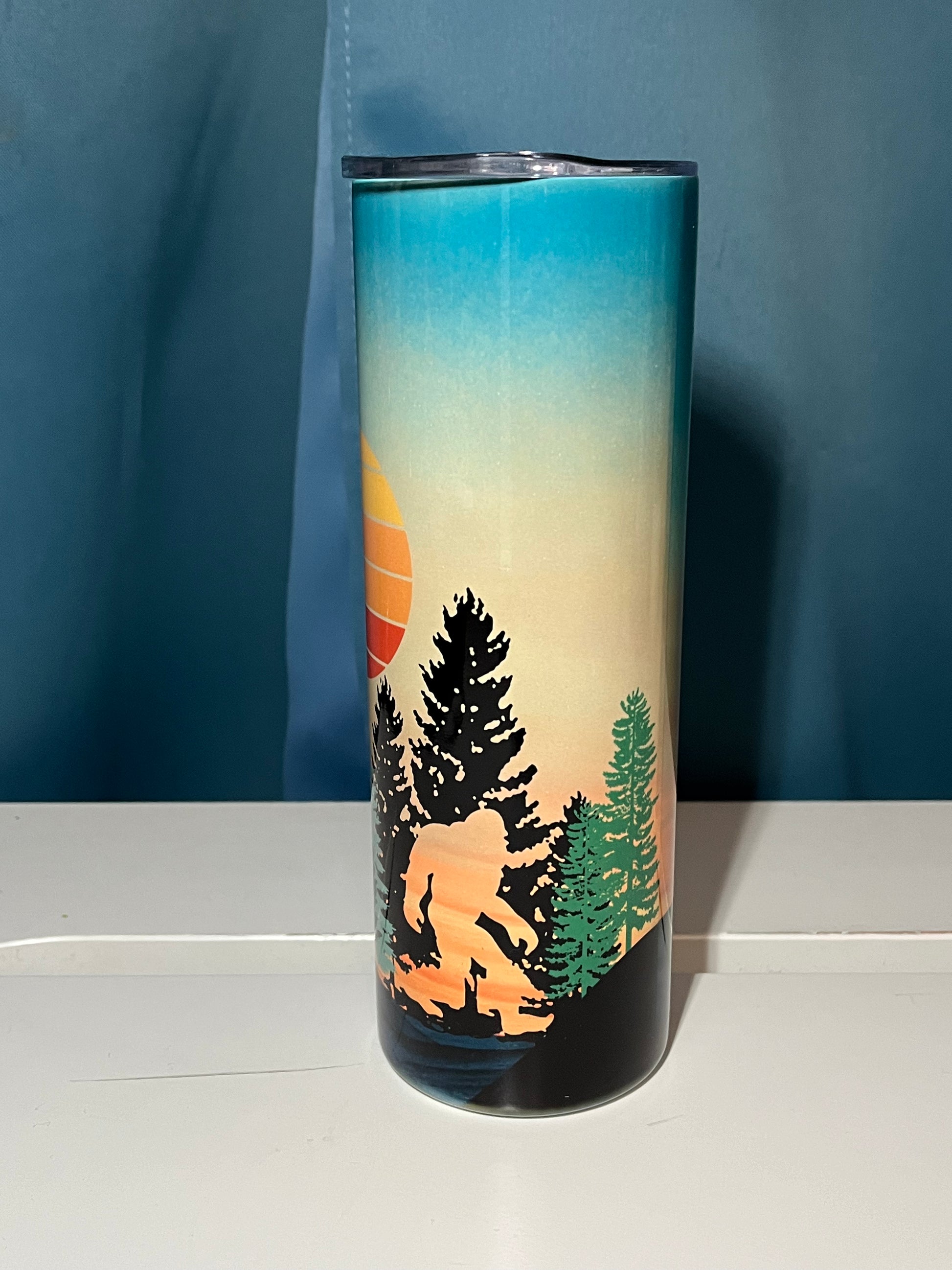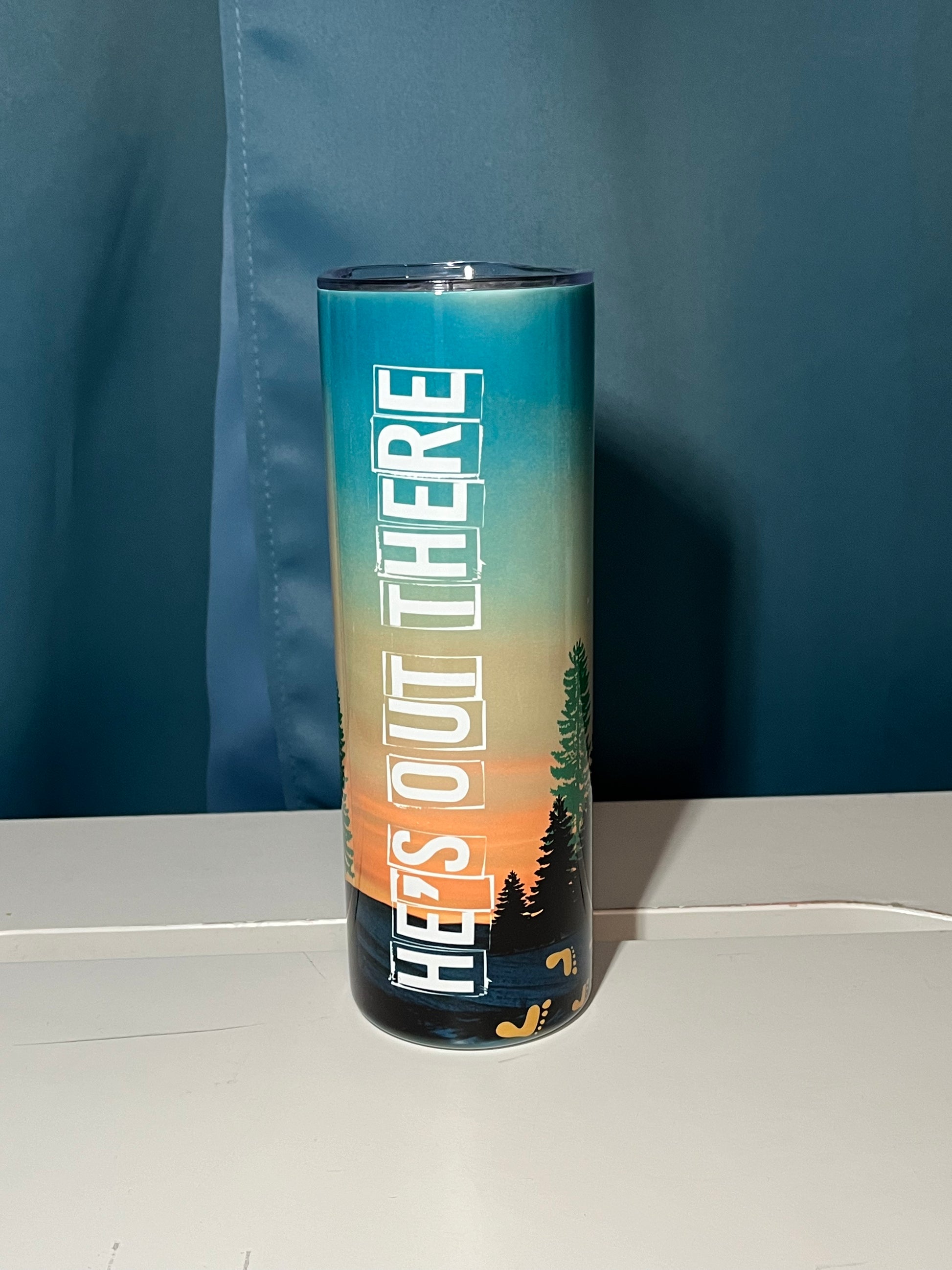 Catch Bigfoot sipping your hot or cold drinks in style with He's Out There! This trendy tumbler features a fun Sasquatch print, so whether you're on an expedition or just lounging, you're sure to stand out!
