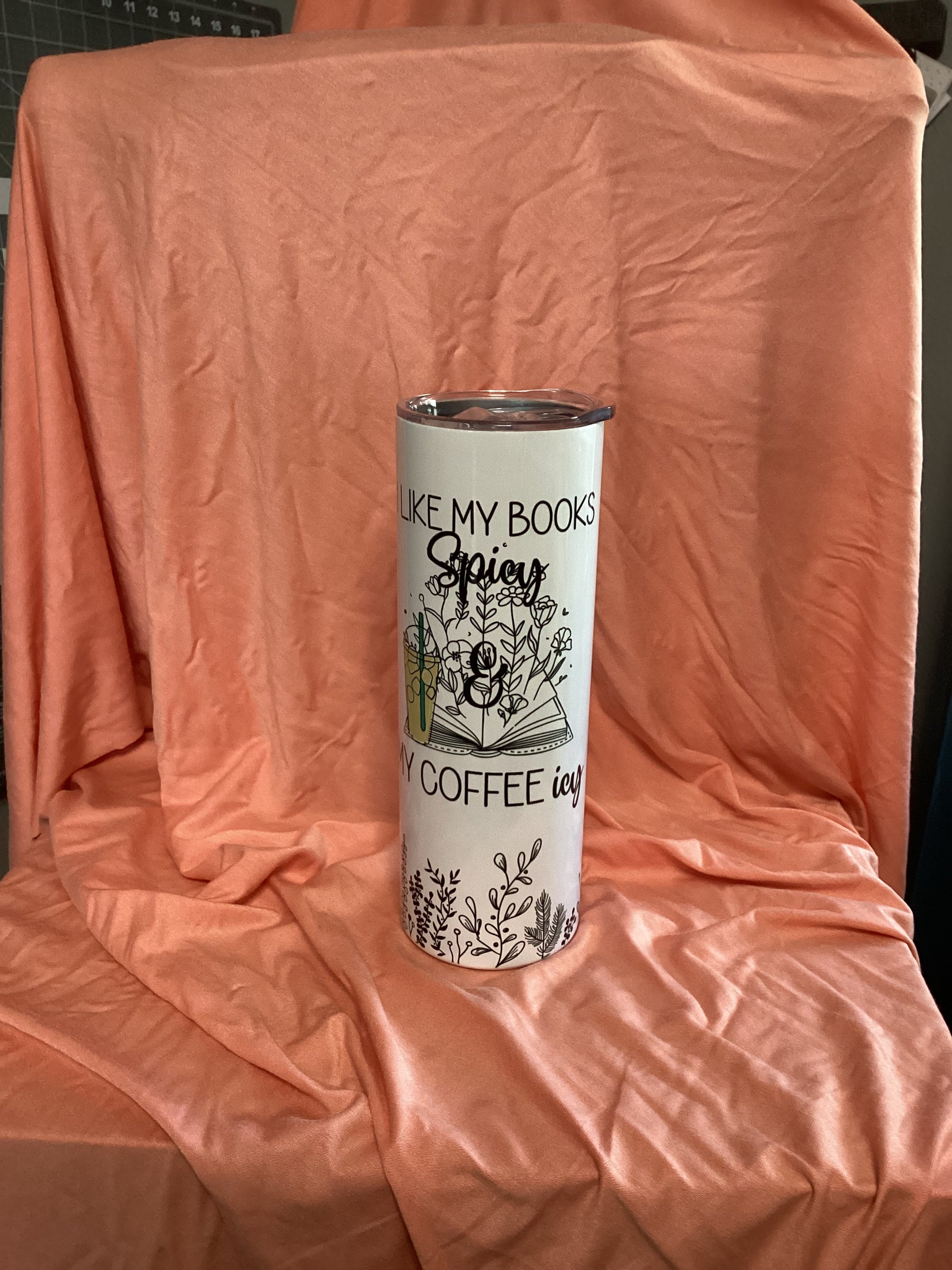 Tame your thirst with I like my books spicy tumbler! This stylish cup will keep your drinks hot or cold, and is perfect for book lovers who enjoy a bit of spice in their lives. Keep the adventure rolling and add a bit of flavor to your day!