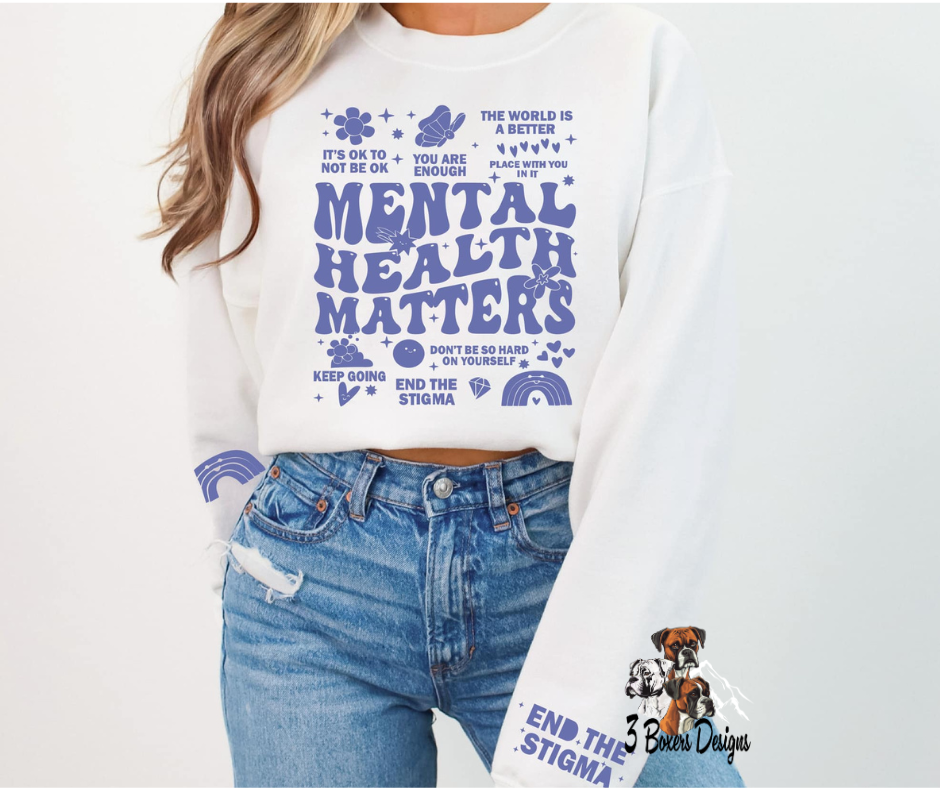 Show your support for mental health awareness with our Mental Health Matters t-shirt. Made with high-quality materials, this shirt is a comfortable and stylish way to spark conversation and promote understanding of this important issue. Stand out and make a positive impact with this statement piece.