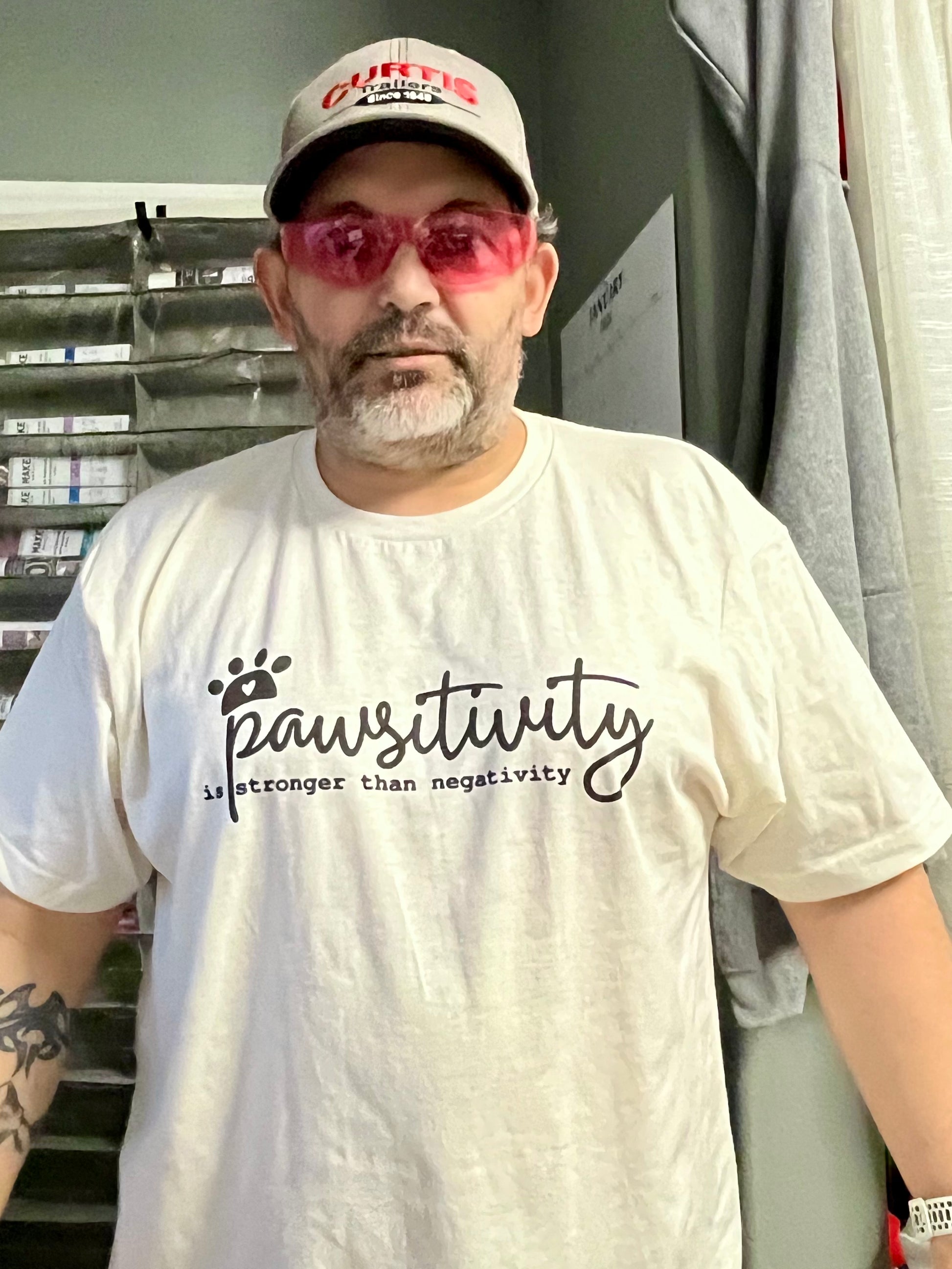 "Spread positivity and good vibes with our Pawsitivity Is Stronger Than Negativity t-shirt! Perfect for fellow animal lovers, this shirt features a playful design and is made with furry friends in mind. Embrace a fun and positive attitude with this quirky and comfy shirt. (Your pets will thank you!)"