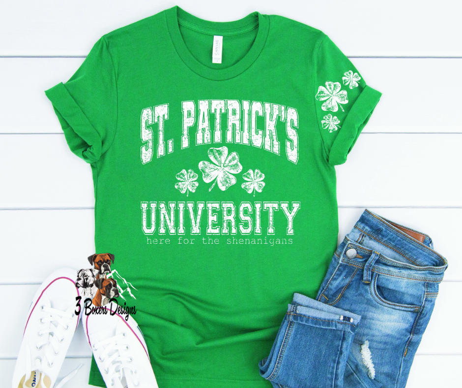 "Join the craic at St. Patrick's University with this shirt that's ready for some shenanigans. Get in on the fun with our quirky tee!"