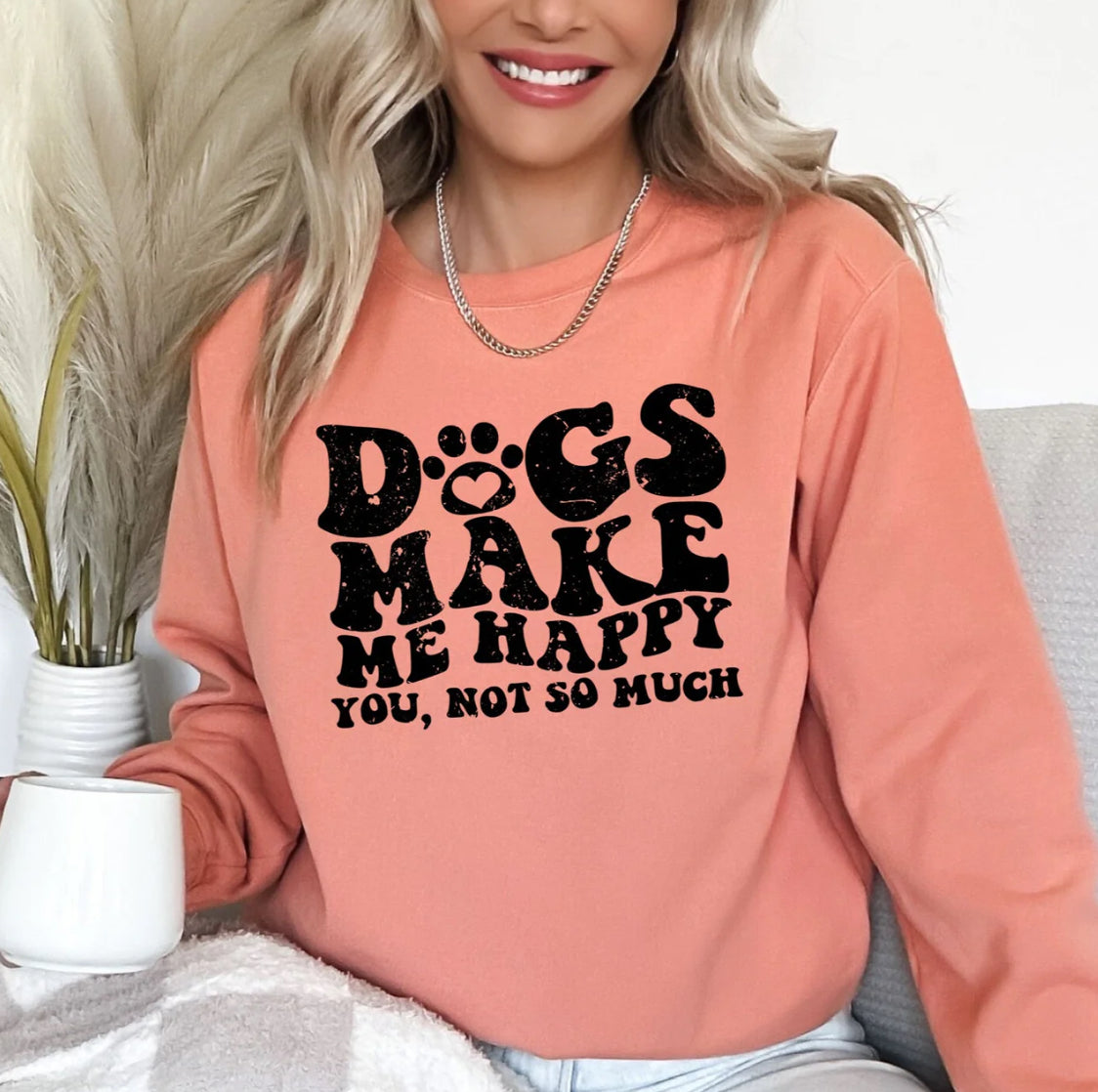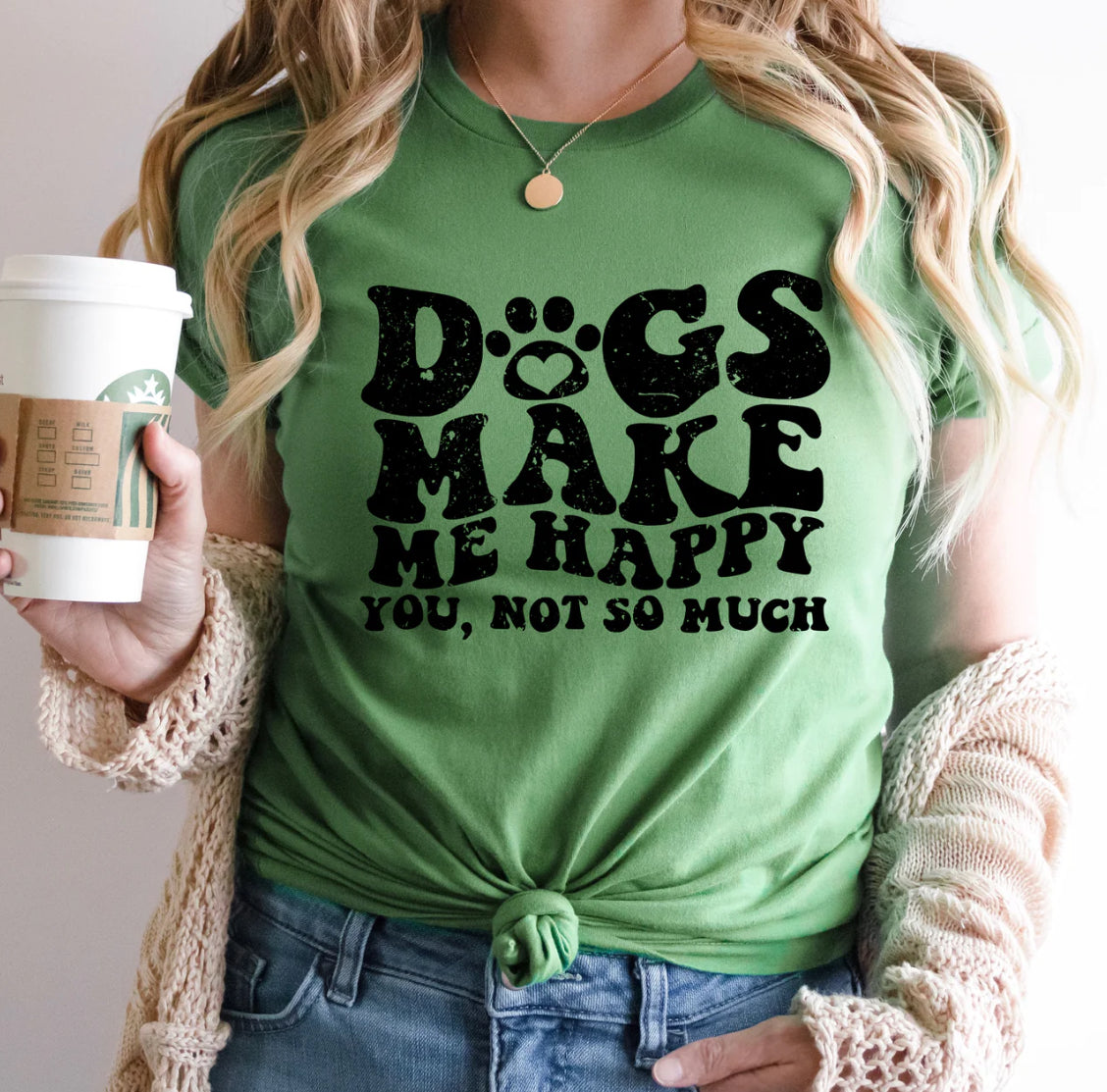 Let your pup fill your life with happiness! This Dogs Make Me Happy shirt is perfect for any dog lover and is sure to make you smile (and look pup-tastic while doing it). Fetch one today!