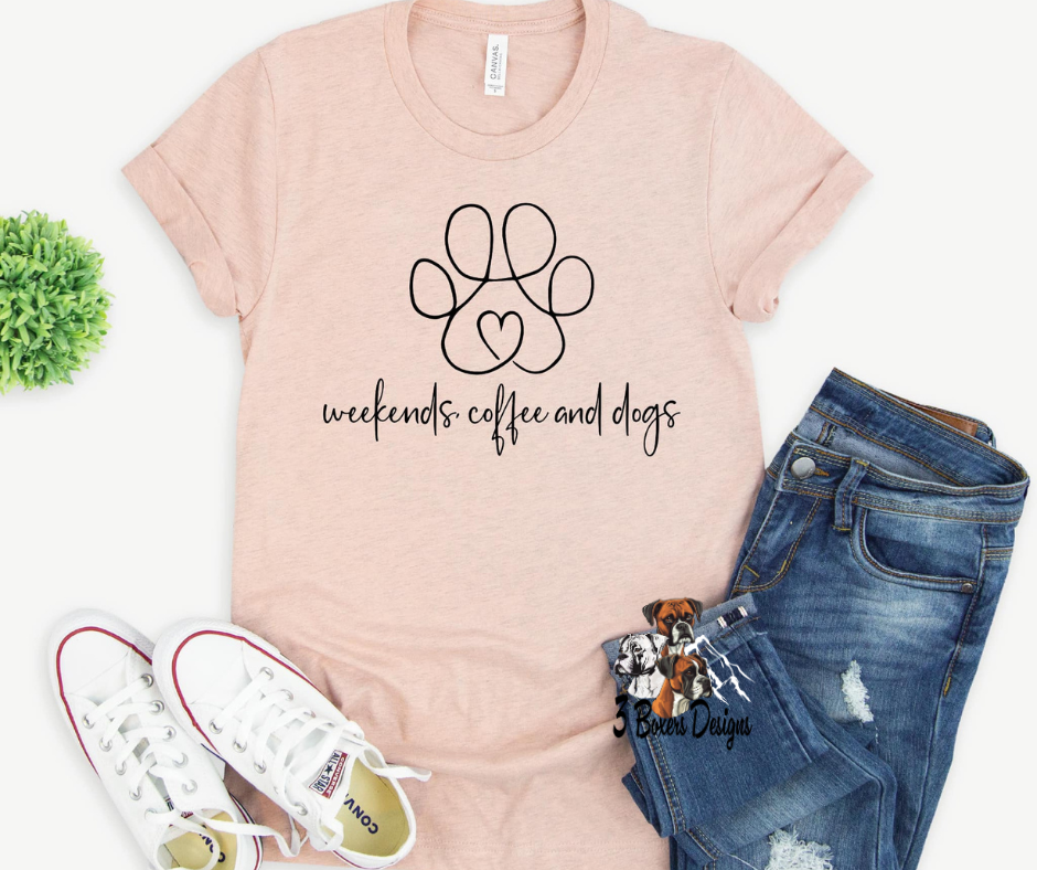 Weekends Coffee Dogs Paw Print (Black Ink)